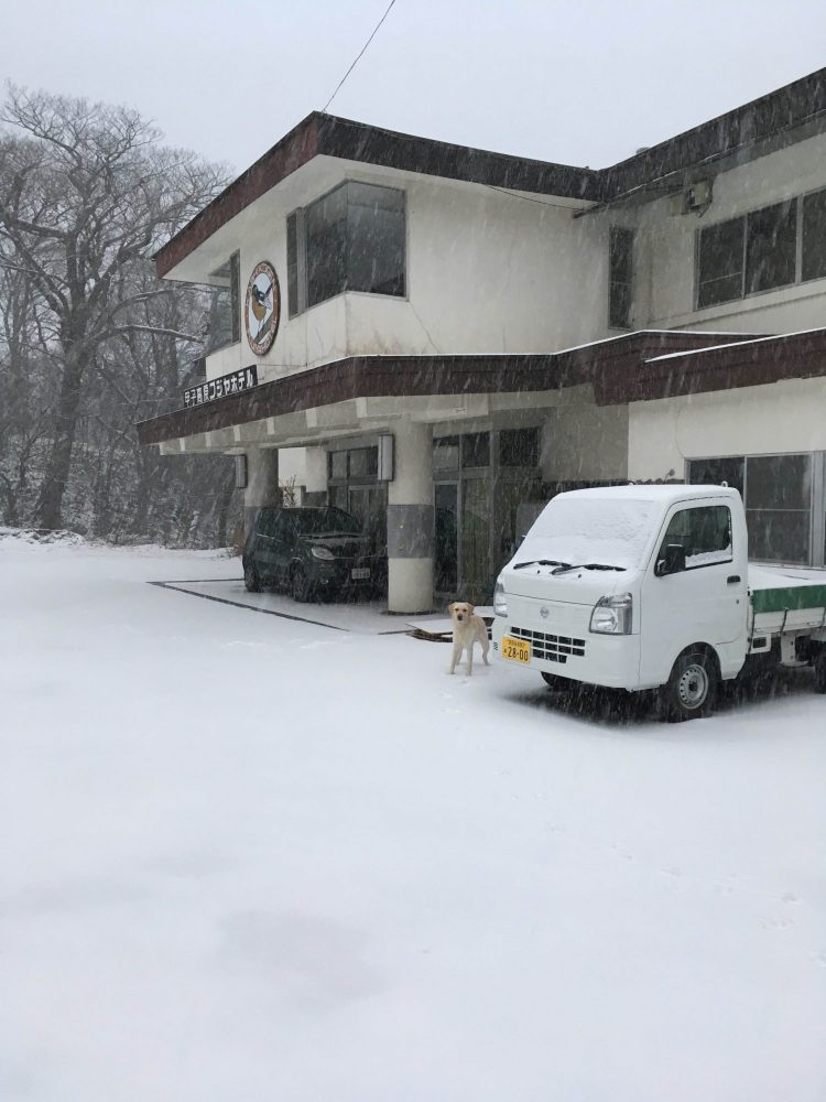明け方まで吹いていた強風が止み、4時過ぎは満天の星空でしたが、今は雪がしんしんと降っています。すでに10センチほどの積雪があり、今日は積りそうです。