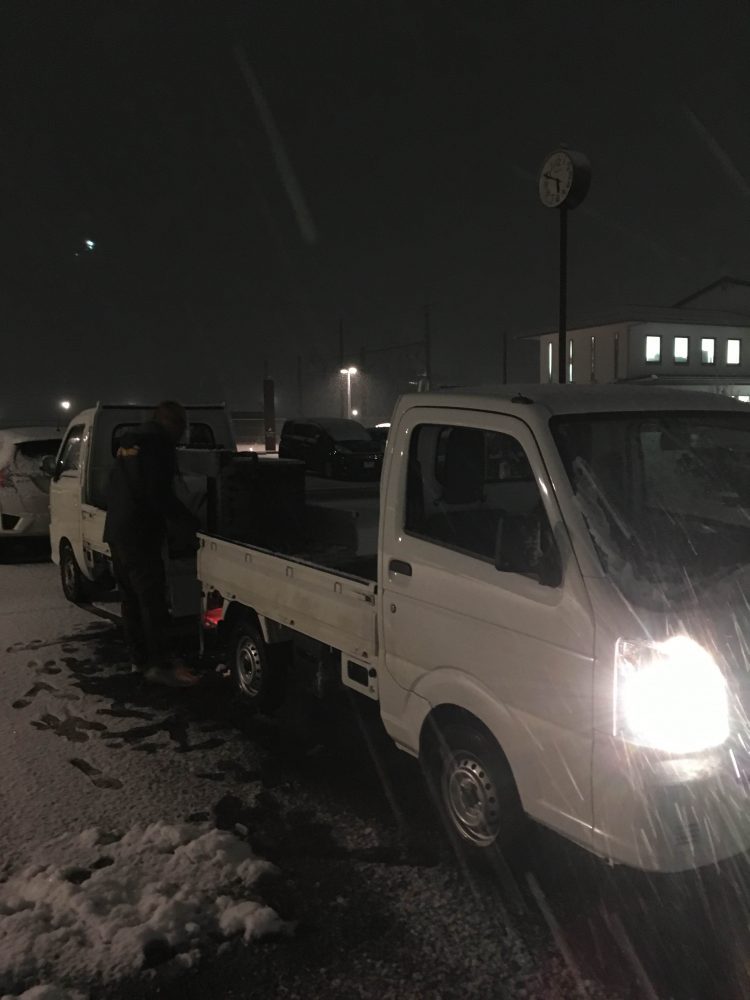 昨夜は白河市内でも結構な積雪があり、テンポスバスターズの配送の軽トラックではホテルへの搬入が難しいために、白河駅で落ち合い積み荷を載せ替えて、新甲子温泉まではクリッパーで運びました。