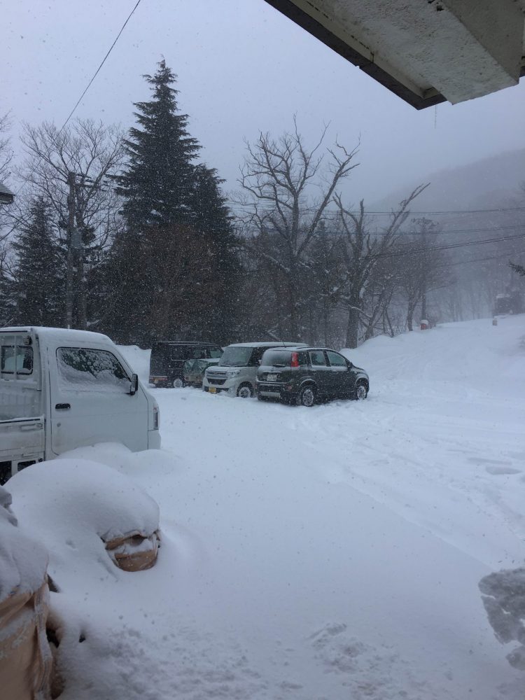 今朝は強風が吹き、巻き上げられた雪で一瞬あたりが真っ白になります。朝からは雪が降ったり晴れたりの天気です。軒下に停めているフィアットの気温計は氷点下6度を示しており、実際にはもう少し気温は低いと思います。温泉清掃のために温泉のバルブを回そうとすると、凍りついて動かず足で蹴って回しました。ボイラーの燃料タンクの上にも器用に雪が積もっています。