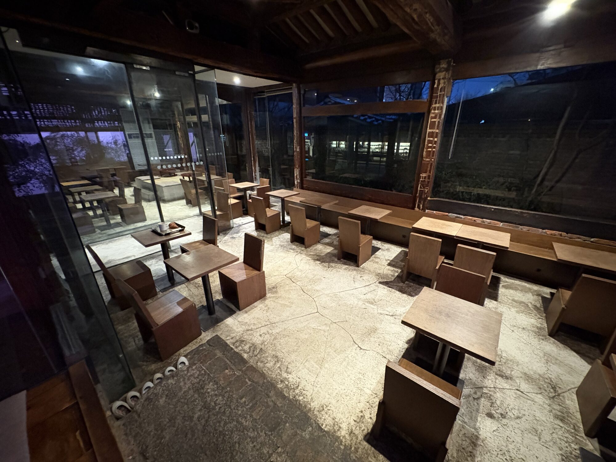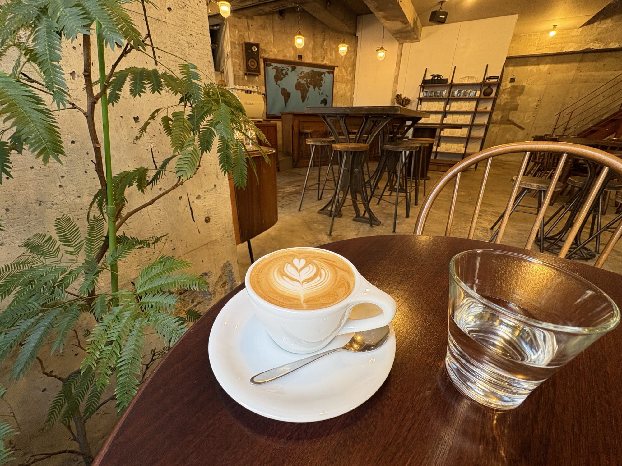 経堂にあるロースタリー&カフェのRaw Sugar Roastに行きました。羽田の焙煎所を拠点にコーヒー豆の卸をしてきた店の旗艦店として2022年に開業しました。1982年竣工のマンションの1、2階を占め、看板が小さく入ったことはありませんでした。以前はビストロが営業していた場所だと記憶しますが、店内はコンクリート打ちっぱなしと言うより、はつりっ放しで解体工事の途中にも見えます。80年代のRCの躯体が持つ、重量感や荒々しさという時間の蓄積に対し、天井ボードが明るい色に塗装をされ、家具に光沢があり、均質な照度の明るい店内照明は物語的な連続性に欠けます。しかし、そんなこだわりは居心地とは関係ない気もします。犬と訪れる人、外国人カップル、パソコン仕事をする人などが集まり、そこに流れるゆるい時間の魔力こそ、廃業率40%とされるカフェを、皆がやりたがる理由かもしれません。