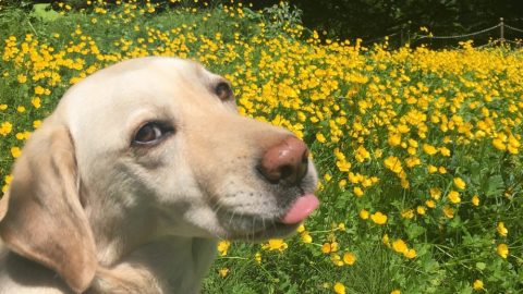 写真は先日までタンポポが咲いていた宿の裏庭で、今は別の黄色い花が咲き誇っています。