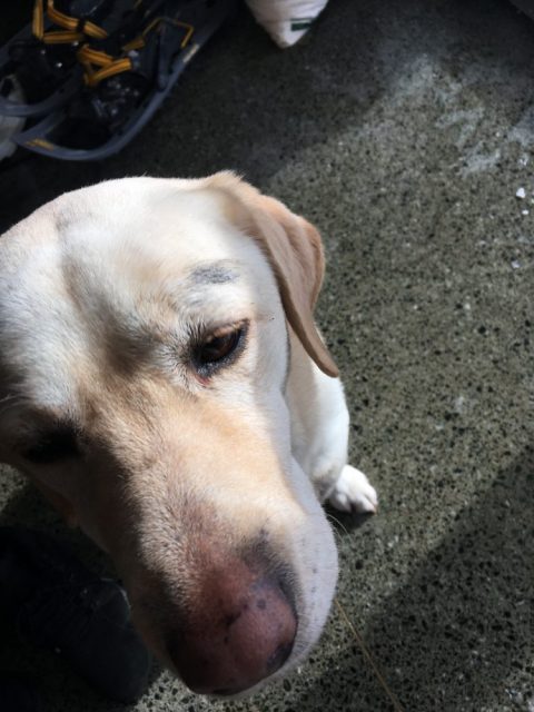 写真は本文と関係ありませんが、ラブラドールが人目を盗んで鍋に残ったパエリアを食べていた証拠です。イモトアヤコのような太く見える眉毛はそのときについたものです。もちろん人間の食べ物は与えていません。