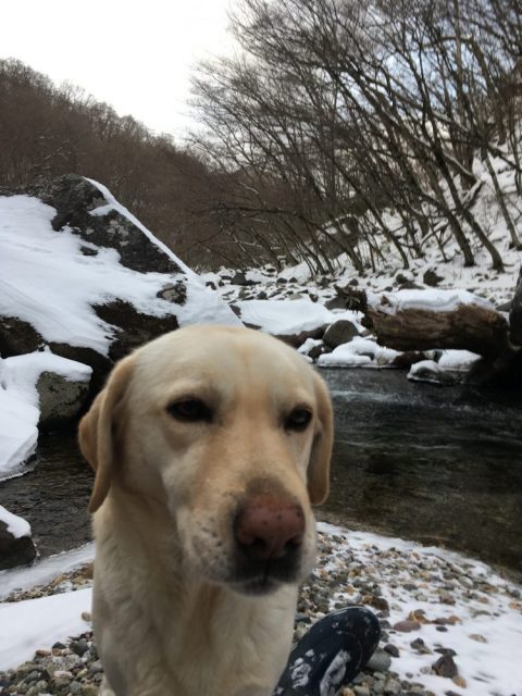 今朝の新甲子温泉も穏やかな快晴です。ラブラドールと阿武隈源流に行くと獣の臭いがして、猪らしい大型動物の足跡が岸辺に向かっています。雪上に動物の痕跡が残るこの季節は、普段は意識しない動物と共存していることを感じます。