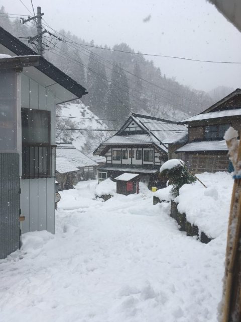 今日は会津の豪雪地帯として知られる三島町に行きました。そのもっとも山深い集落に伺いかんじき作りについてお話を伺いました。しんしんと降り続く雪は同じ福島県でも新甲子温泉とは別次元の積雪で、阿武隈源流の雪に慣れていても新鮮な感動があります。炭焼きや農業を中心とした集落へは町の中心部から10kmほど離れていますが、立派な道路が整備されライフラインが確保されています。