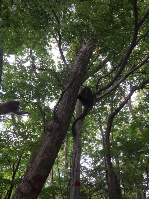 秋になったためか、最近は宿に猿の群れが出没するようになりました。ラブラドールがうなり始めますので猿が来るのが分かります。写真は昨日の夕方宿の屋根に登っていた二匹の猿です。
