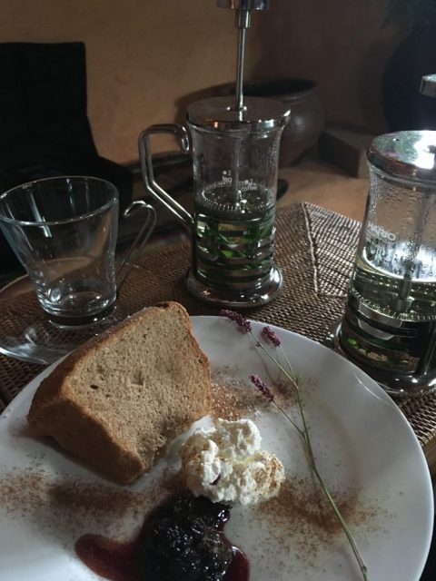 灯油ランプの灯るカフェにいると時間もゆっくりと流れ、消費生活を最小限にするダウンサイジングの生き方が何とも心地よく思える場所です。
