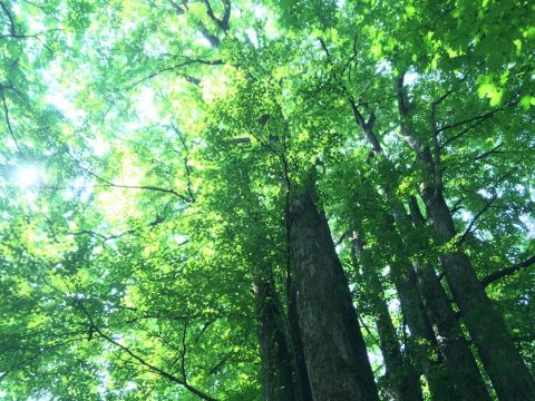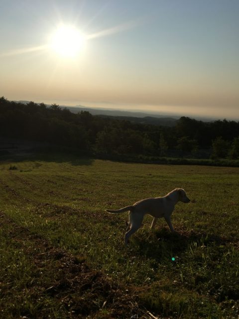 今朝の新甲子温泉も快晴です。木漏れ日のさし込む森に入るとひんやりとした冷気が心地よく、深呼吸をしたくなります。陸上トラック横のスキー場に行くと足元に広がる白河の市街地を朝もやが包み込み、遠くの山々が霞んで見えます。森で生活をしていると、毎日繰り返されるこんな当たり前の朝を特別な景色にしてくれます。ラブラドールは成田空港での麻薬探知犬トレーニングの記憶が蘇るのか、あわただしい動きで匂いを嗅ぎ始めます。