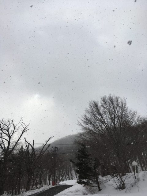 今朝の新甲子温泉はフィアットの気温計によると氷点下3.5度まで冷え込み雪が降っています。早朝温泉に入っていると、阿武隈源流の渓谷から吹き上げる風に乗って、雪が舞い上がるのが見えます。