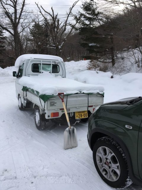 今朝、1週間ぶりにクリッパーを雪のなかから救出しました。もちろんエンジンは一発で始動し、ドアまで埋まる雪を押し分け難なく出てきました。荷台には雪が50cmの高さまで積もり、重みで積み荷を固定する二本のロープはちぎれていました。荷台から降ろした雪は意外に大量で、小さなかまくらなら作れそうです。近隣の旅館でも屋根の雪下ろしが必要だと話していましたが、軽いパウダースノーでも、積もっているうちにかなりの重量になってしまいます。