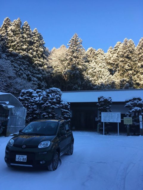 金曜日に雪かきをして地面が見えていたはずの駐車場は1日にして結構な積雪になり、クリッパーを出すことは難しそうです。ホテル入口には除雪車が押しのけた雪が高さ50cmほどの壁のようになっていますが、このぐらいの高さならフィアットは問題なく出入りできます。
