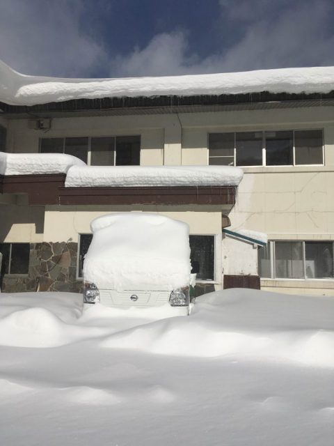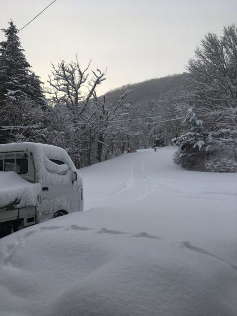 今日はこちらに来てから最高積雪で、長靴は完全に埋まりますので、積雪は45cmほどでしょうか。東京の雪とは違い、踏みつけるのを躊躇したくなるほど柔らかな雪で、スキーをしたくなります。今日は二件ほど打合せがありますが中止になるかもしれません。