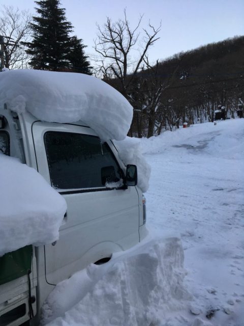 軽トラックのクリッパーは車のまわりを除雪してもらい動かせるようになりました。これで雪の消えた白河市街地に行けば目立つことでしょう。