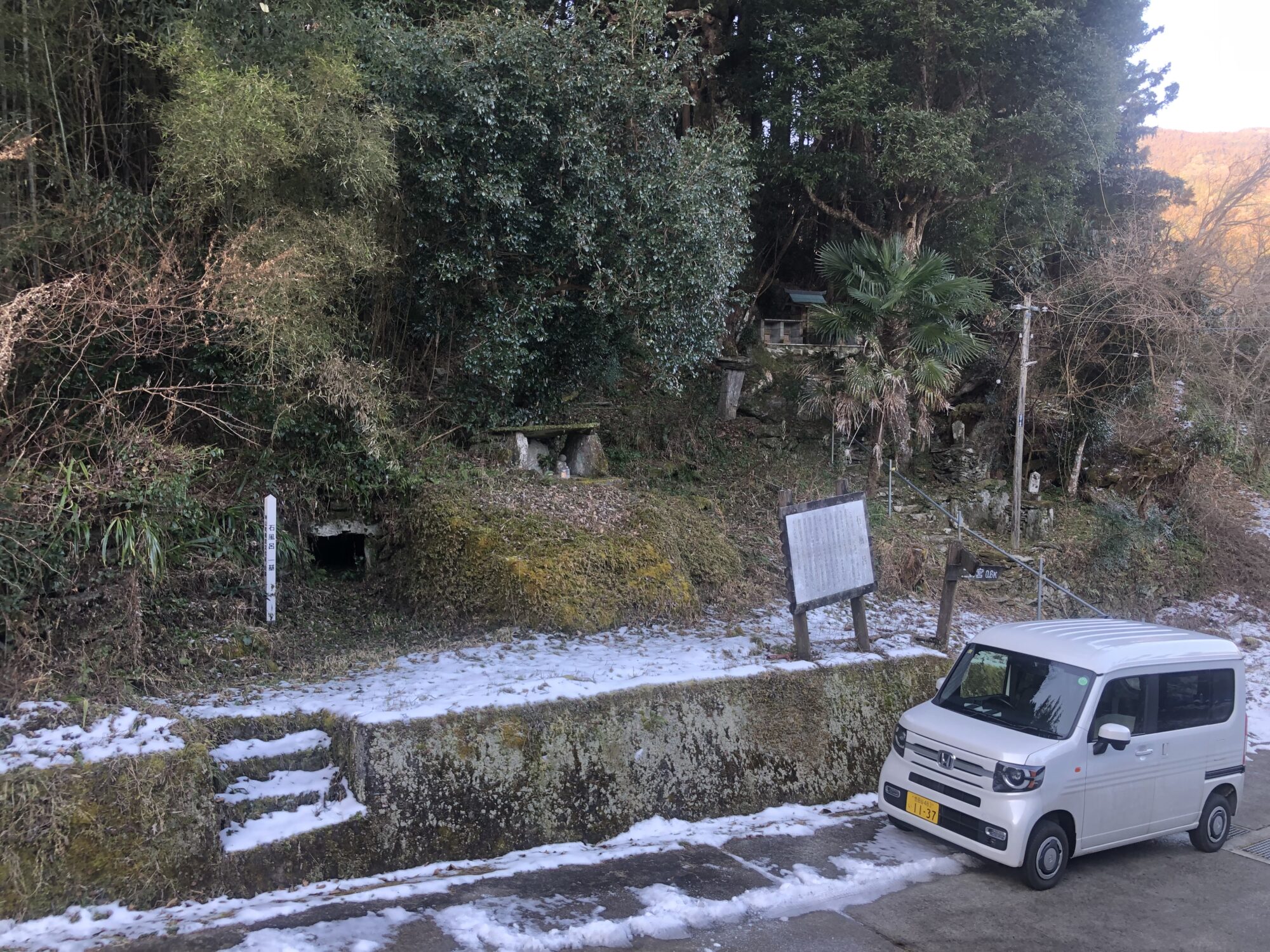 N-VANは昨年後半から月5千kmペースで距離を重ね、今年に入って1万km以上走りました。走行距離が伸びる理由は、石風呂のフィールド調査に中四国・九州方面に出かけるからです。かつて瀬戸内一帯にその数が数百とも数千とも言われる石風呂が存在しましたが、今やその大半は人知れず山中に埋もれています。これらの遺構を訪ねる旅は秘境への冒険旅行の趣があり、たどり着くための険しく狭い道は軽規格の車幅が有利に働きます。Googleマップはドライバーの運転傾向だけではなく、車の種類まで理解しているのか、時々小型のトラクターしか通れないような近道を案内します。また目的地付近に駐車スペースがない場合も多く、そんな時でも軽規格の外寸は他車の通行を妨げずに身を隠すことができます。他方で全高は車内で楽に着替えができるほど広く、仮眠や休憩にも最適で、調査旅行の最高のパートナーです。