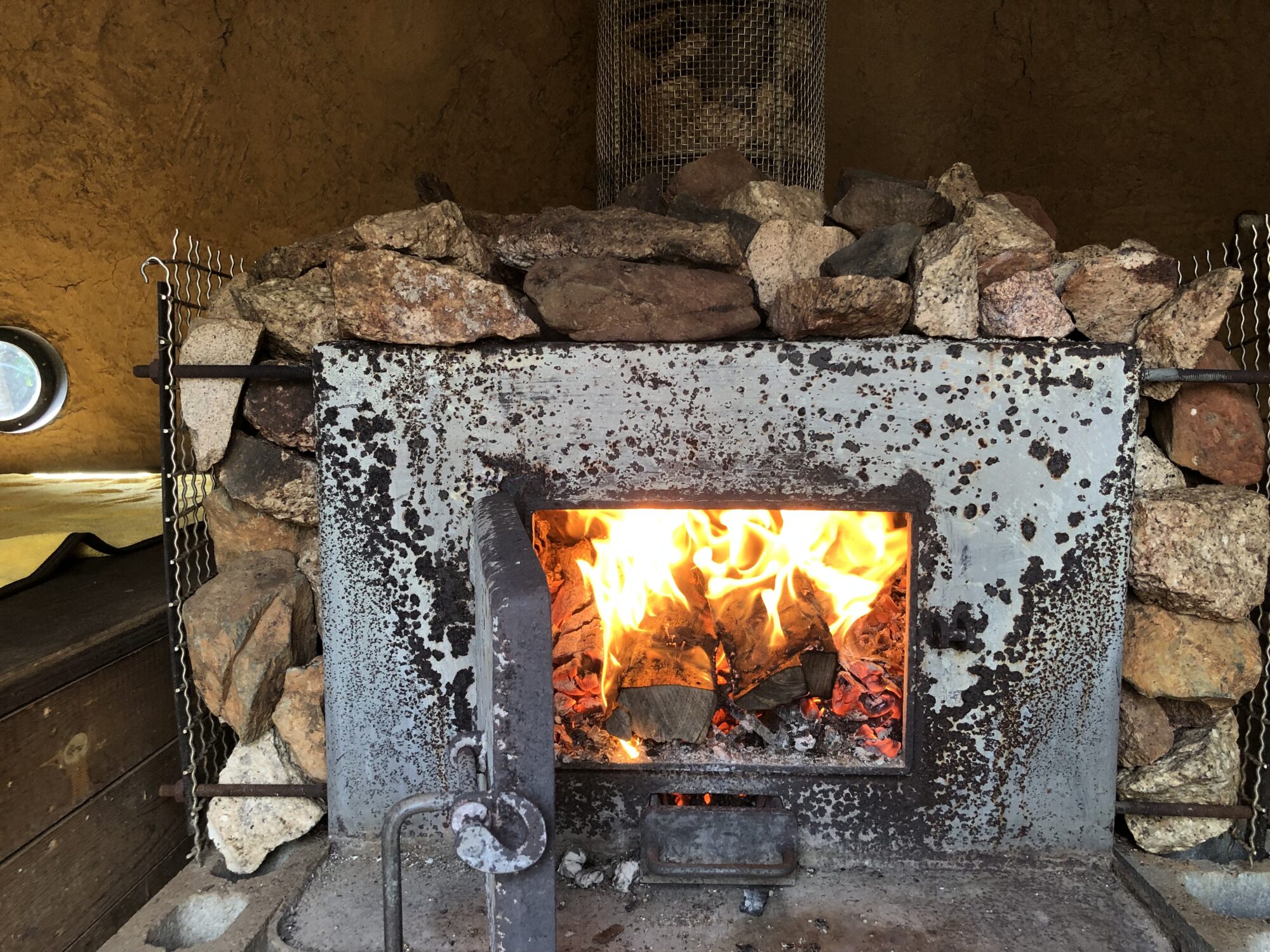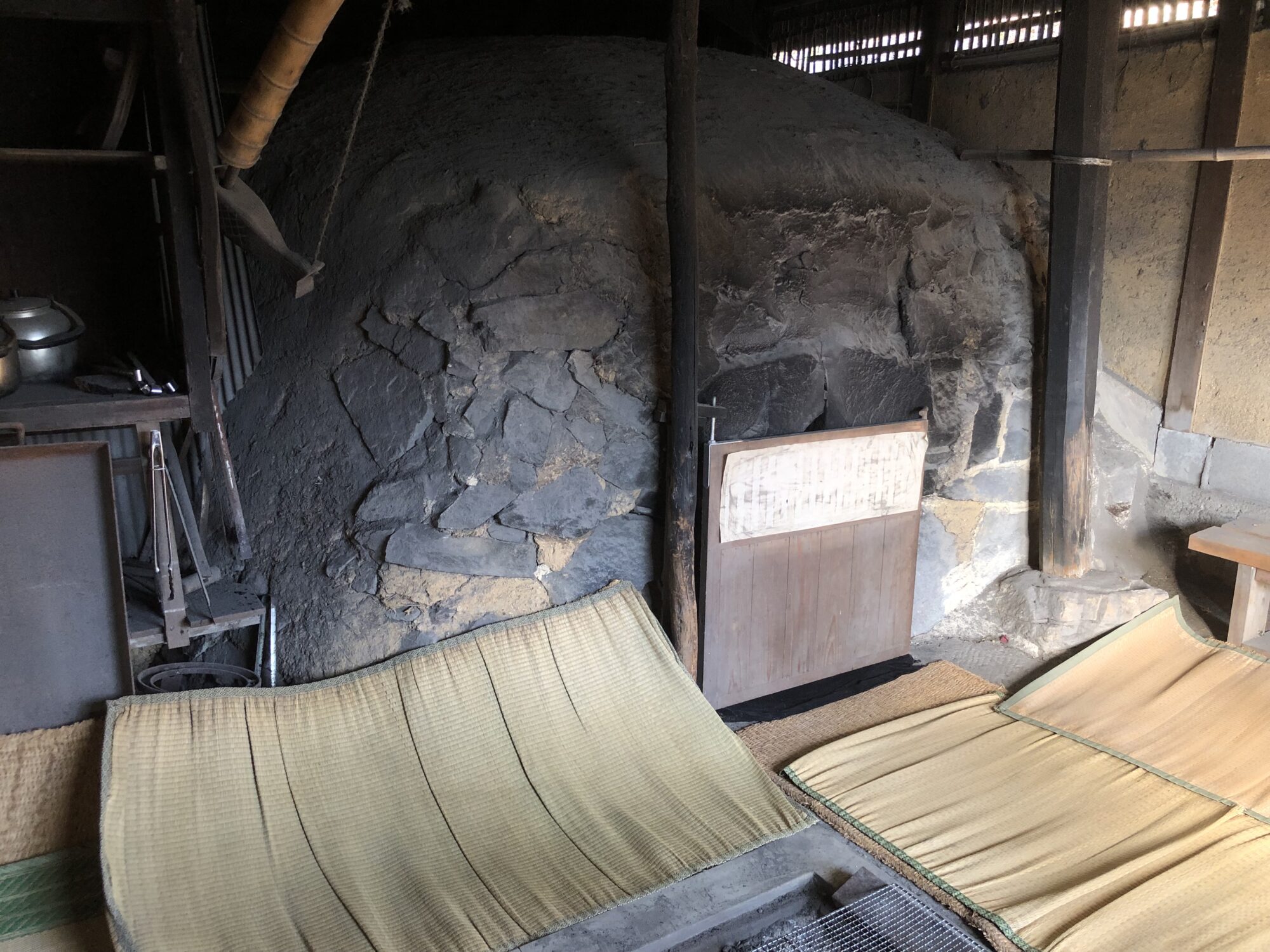 岸見の石風呂に入りました。写真を見ると子供が洋服を着て入っているので、熱くないだろうと思ったら凄い汗で、一般のサウナと変わりません。匂いのしないスモークサウナといった感じで、世界の入浴文化は洋の東西を問わないのだと思います。朝7時から石室内で火を焚き始め、10時に入った頃には火は外に出されていましたが、体感80℃です。ヨモギやセキショウなどの薬草の上にゴザが敷かれ、寝た状態で5人が入れます。夕方4時でも一応汗はかけるようで、石室はレプリカだと思いますがその蓄熱性には興味をひかれます。体調が良くなるという話も聞き、すごい汗のわりにシャワーを浴びたようにさっぱりして、なかなか体が冷めません。山口に遠征した甲斐がありましたが、近隣の寺にも同様の石風呂があり、再び訪れる必要がありそうです。北欧ばかり注目していましたが、灯台下暗しで日本の石風呂文化こそ復権させるべきでしょう。