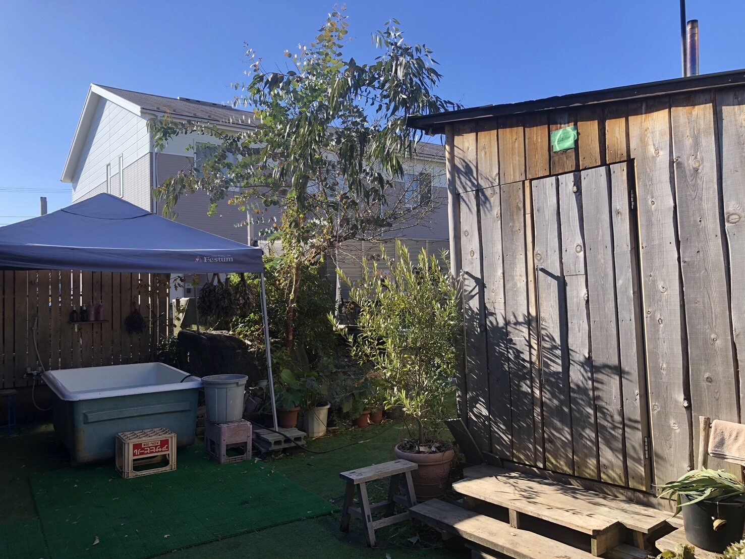 日立市の「85歳が創る茨城極熱サウナ~3un~」に行きました。施設名は、大工一筋60年という経営者の祖父が、自宅の庭にサウナ小屋を作ったことに由来します。凄いのはロケーションで、住宅地にある工務店の資材置き場にサウナ小屋と水風呂、外気浴スペース、更衣室兼用のシンギングボウルを用いた倍音によるサウンドセラピーを行う部屋があります。外気浴スペースはアパートと隣接し、犬の鳴き声や生活音がするのはご愛敬ですが、合計4時間にも及ぼうというプログラム中は意識が薄れていきます。とくに北欧から取り寄せたオークのウィスクによるウィスキングは、ここが茨城県の工務店の中庭であることを忘れます。ウィスキング後半はロウリュで一気に汗を流しますが、立って施術をするセラピストは体力勝負です。森林のような香りと蒸気に包まれ、五感を研ぎ澄まされる体験は、サウナのメインストリームになる気がします。