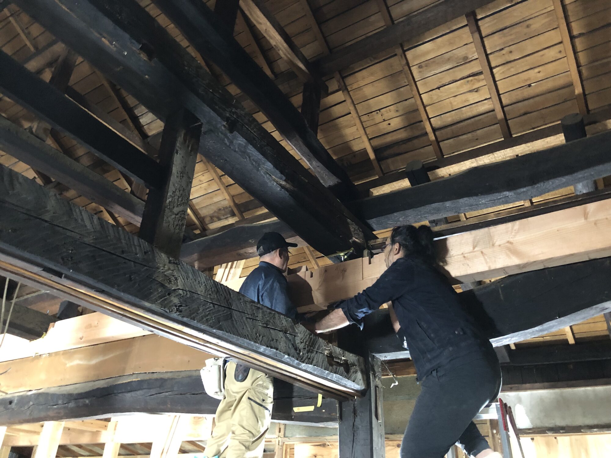昨日は白河の古民家改修工事の現場に行きました。プレカットされた部材を組み立てるだけの昨今とは異なり、ベテランの大工さんは古民家の梁の形状にあわせて、その場で木材を加工して組み合わせていきます。古民家改修の最大の問題は、職人技を持つ大工さんの確保ですが、今回は横浜から来ていただいています。伝統的な建築技術が息づく古民家は急速にその数を減らしていますが、同様にそれを作り直すことができる職人さんも一定年代以上に限られ、技術継承のタイムリミットは目前です。最も高い梁の上には神棚が見つかり、そこを避けるための設計変更が行われるなど、施工現場での創意工夫と、そのための技術が不可欠です。新築をして壊すことの繰り返しが、醜い街並みを全国に作り出しただけではなく、創意工夫というスキルを日本人から奪ったのでしょう。