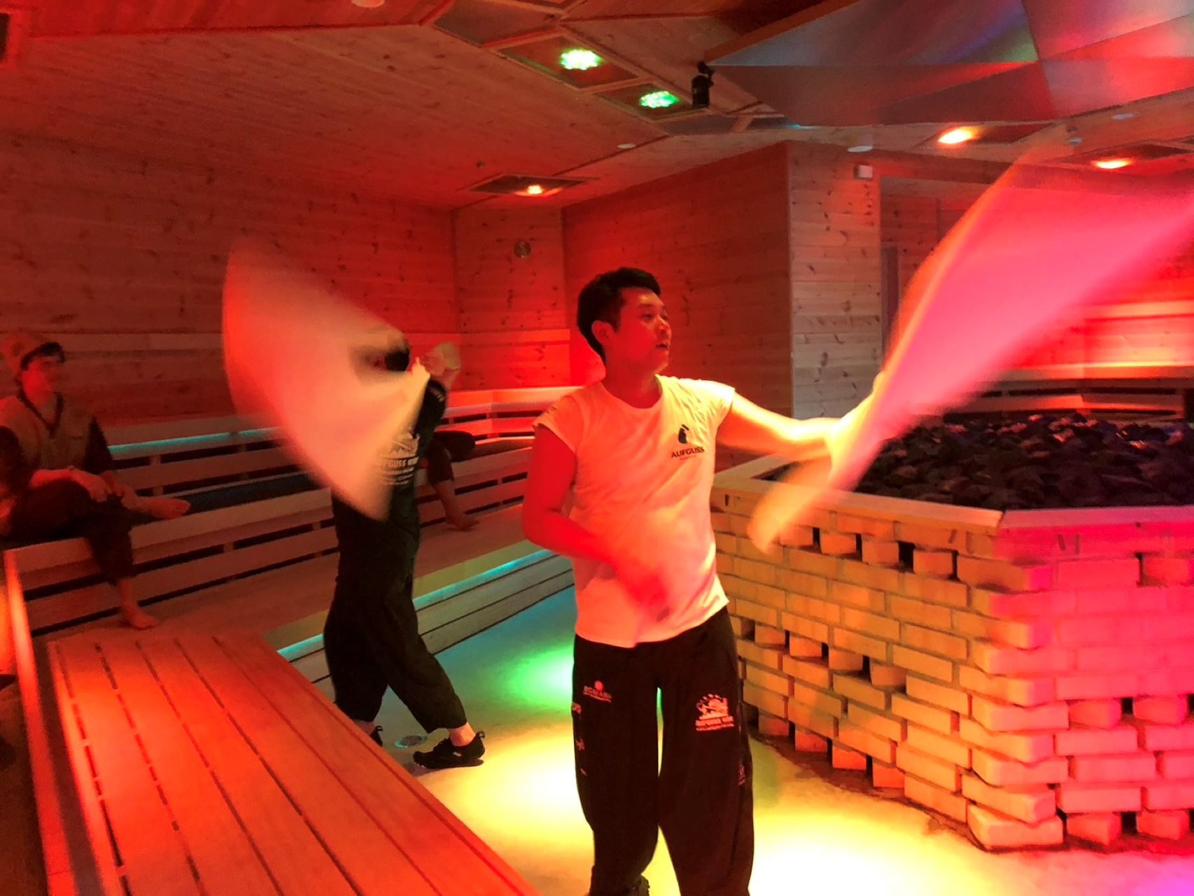 静岡のしきじから始まり、名古屋のウェルビー栄、大阪のアムザまで2日間に入ったサウナのセット数は数え切れず、体中の水分が全て入れ替わったと思えるほどです。サウナ旅というよりはもはやトライアスロンで、一種の中毒であることも含めてエクストリームスポーツのカテゴリーに入れても良いと思います。ウェルビー栄のアウフグースシアターで行われる12分ほどのショーを3回見ましたが、観客もバカにならない汗をかきます。ドイツ発祥のアウフグースは日本でもにわかに盛り上がりますが、アウフギーサーの華麗なパフォーマンス、ロウリュの香りと蒸発音、大音響の音楽と照明による演出に引き込まれます。最大の魅力は観客も同時に汗をかくショーの一体感でしょう。アウフグースやウィスキングはまだ一般的ではありませんが、サウナをより深く理解する手段になることは間違いないと感じます。