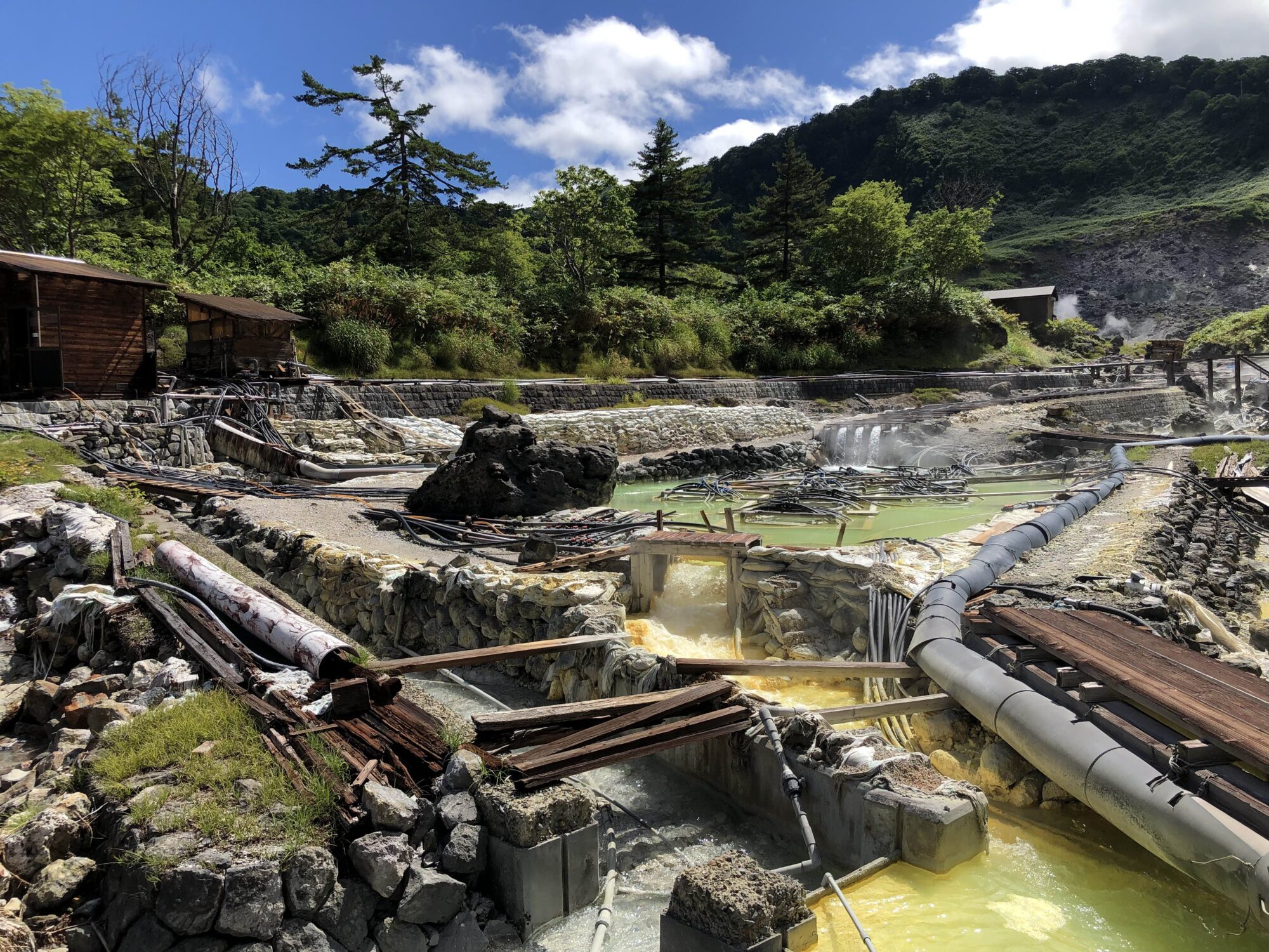 玉川温泉から戻りました。4泊は湯治期間としては不足で、5日目でも50%源泉の浴槽には満足に入れません。皮膚の弱い部分がただれ、かさぶたができるまでは、100%源泉に入るなどほぼ不可能です。日に3、4度温泉に入りますが、発汗が多く体力を消耗します。リフレッシュするどころか声が枯れ、満身創痍です。声が枯れるのは、普段からまないたんが出るからで、老廃物や毒素を排出し、次にはおできができると思います。他の温泉地と違う点は、難病の治癒といった話が公然と宣伝されていることです。通常、直接的な表現は問題になりますが、回復事例が多いだけに許されるのかもしれません。滞在期間が長いために海外に行くような大型キャリーケースの人が目立ちます。生命の生存を許さない有毒な玉川の上に旅館があるため、虫がほとんどいないことも特徴でしょう。毒を以て毒を制す、最強の温泉地であることは間違いありません。