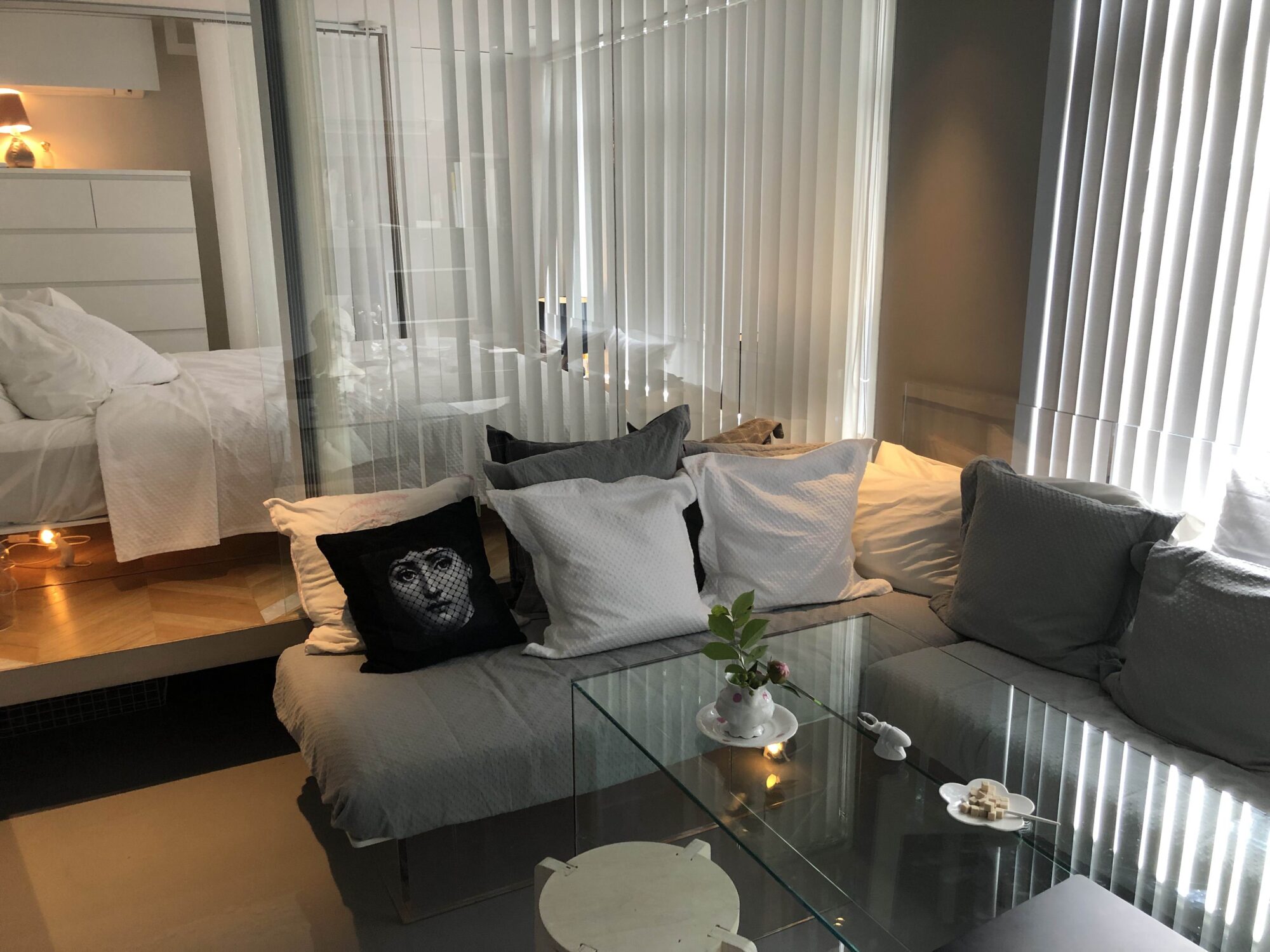 昨日はSAUN9NE(サウナイン) 東京北参道を見せてもらいました。サウナ施設が乱立するなかにあっても、大人っぽいセンスの良い空間はまだまだ足りないと思います。築50年の5階建てS造の2階部分50㎡を使うリノベーション物件は、アパレル企業の事務所兼倉庫だったビルをサウナにコンバージョンする離れ業です。概して日本のホテルは照明に無頓着で高級ホテルでも明る過ぎますが、自作を含む10wの白熱球の照明が秀逸で妖艶な風情が漂います。自家製のテーブルをリビングに使いながら、どこかパリのブティックホテルを想起させる空間は、デザイン性もさることながら落ち着いた居心地の良さです。ベッドスペース全体の床を上げることで、室内を見渡せる巧みな設計により開放感を感じます。障子を使ったサウナ室は明るく、チラーで5℃に設定された水風呂や夕刻が美しい外気浴スペースにも抜かりがありません。やはり、神は細部に宿るのでしょう。
